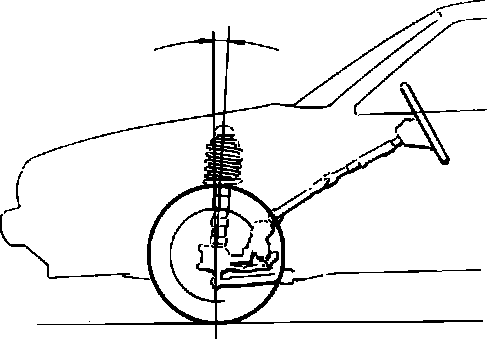 Caster angle refers to the angle at which the swivel pin (king pin) deviates from vertical when viewed from the side, Fig. 5.