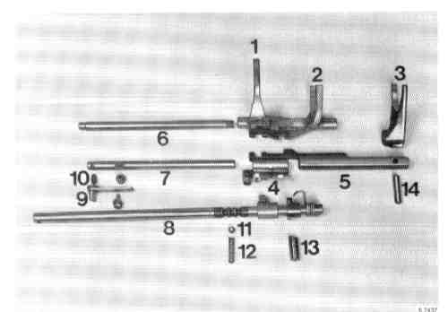 7. Actuator shaft for reverse and 5th