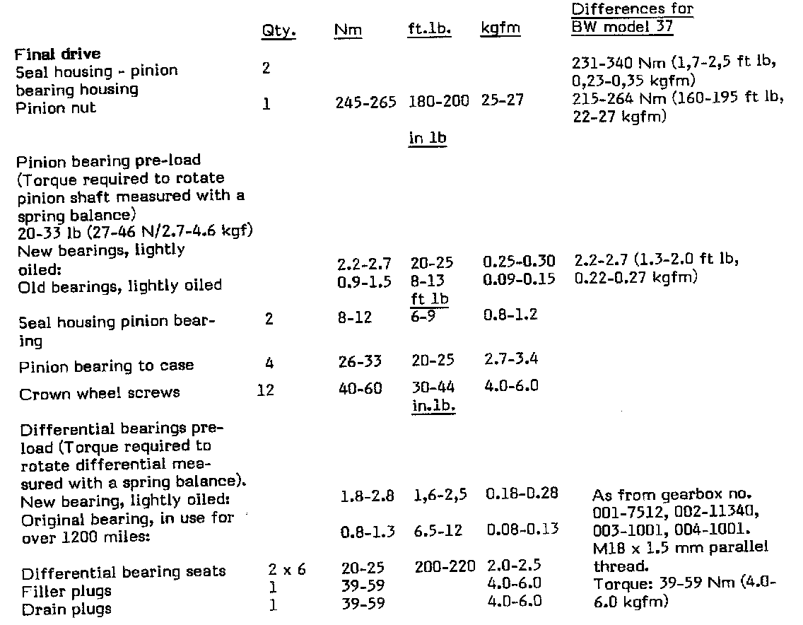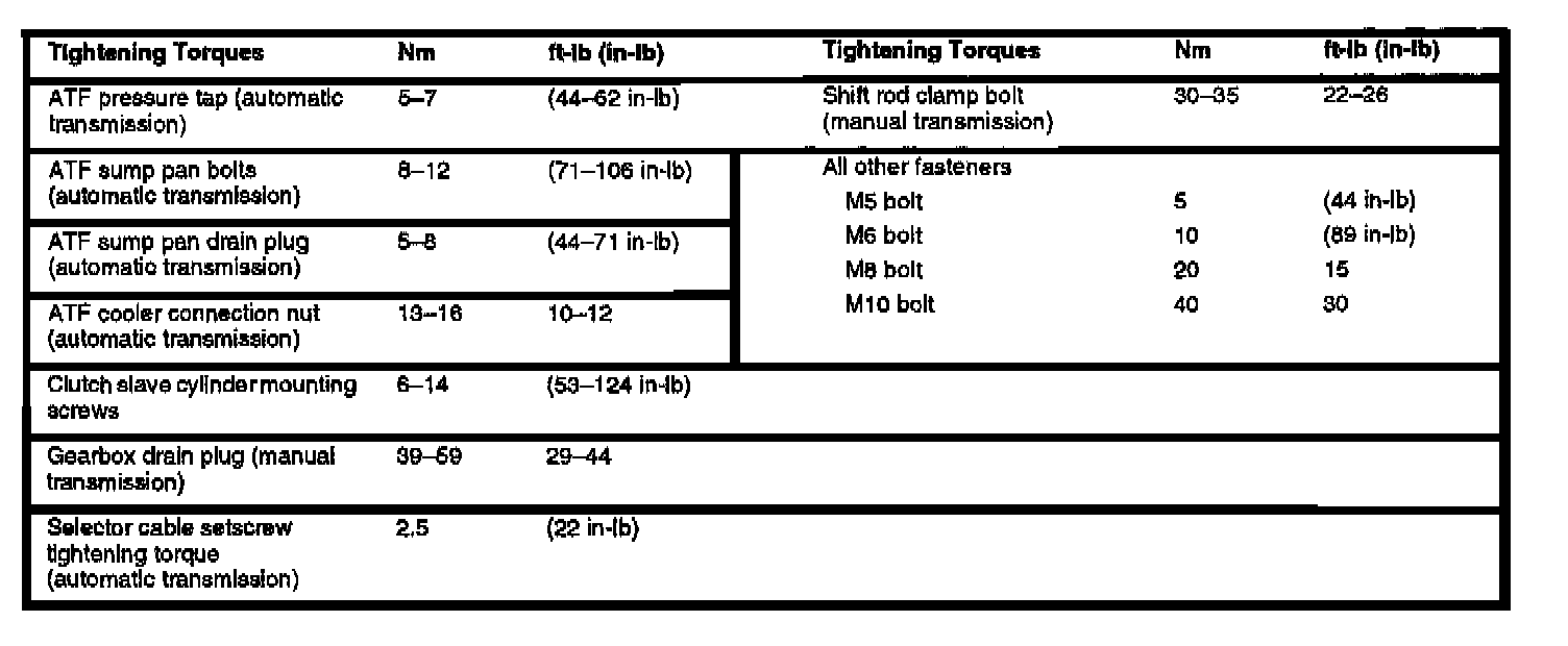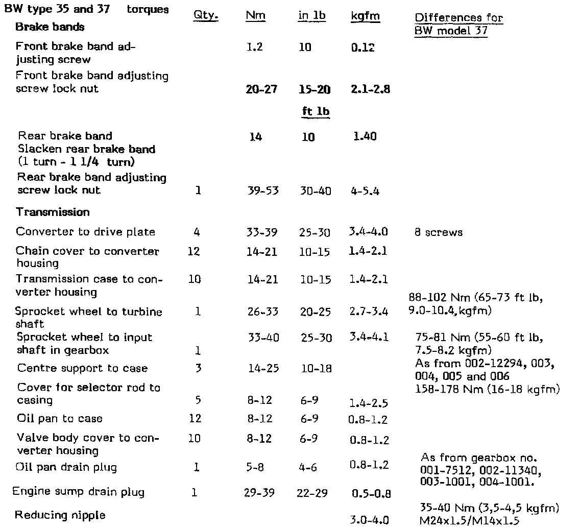 Borg Warner 35/37 A/T Torque Specifications:
