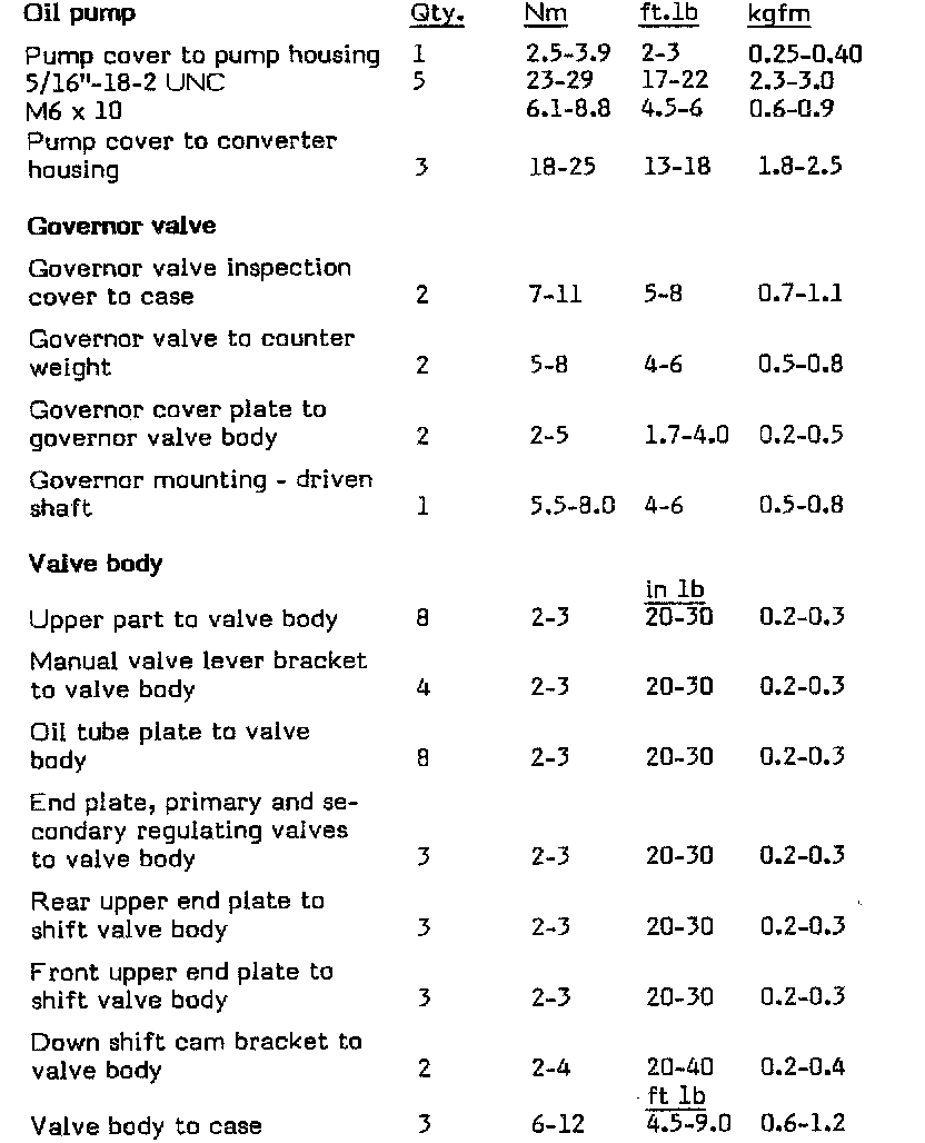Borg Warner 35/37 A/T Torque Cont.: