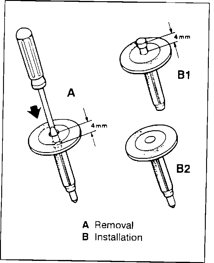 A new expanding rivet has been introduced into late 1991 9000 production. This rivet replaces the previous screw-type fastener and will hold more securely as well as be easier to install and remove.