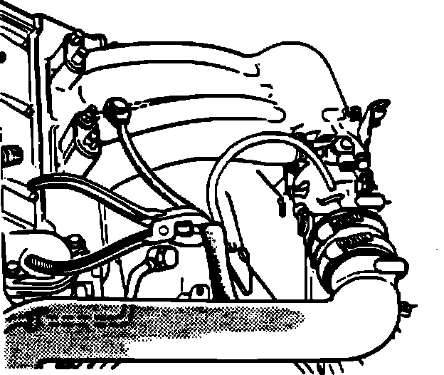 4. Disconnect the bottom hose from the AIC valve and the top hose from the throttle housing.