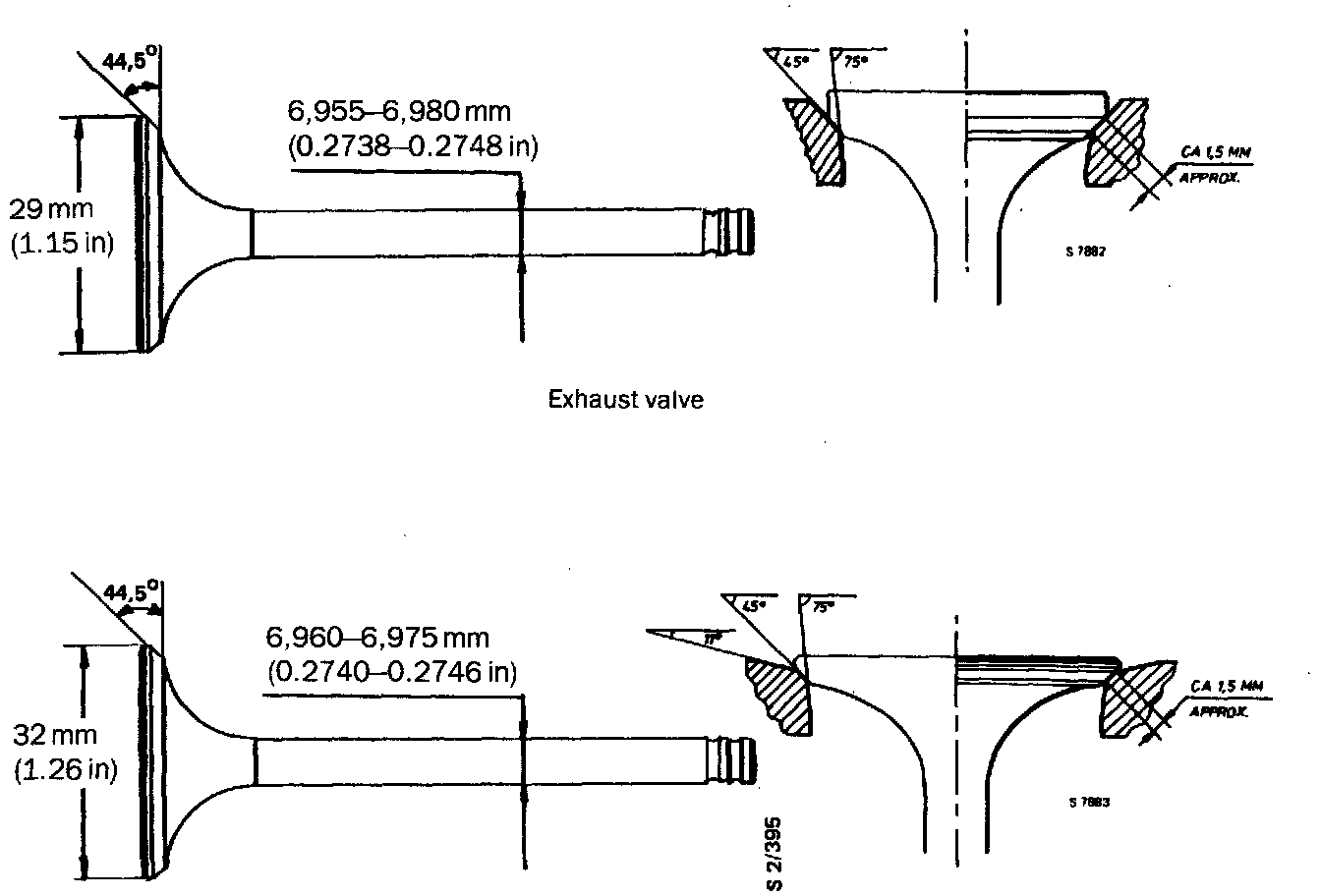 NOTE:Valve seat angle for inlet and exhaust valves: 45°