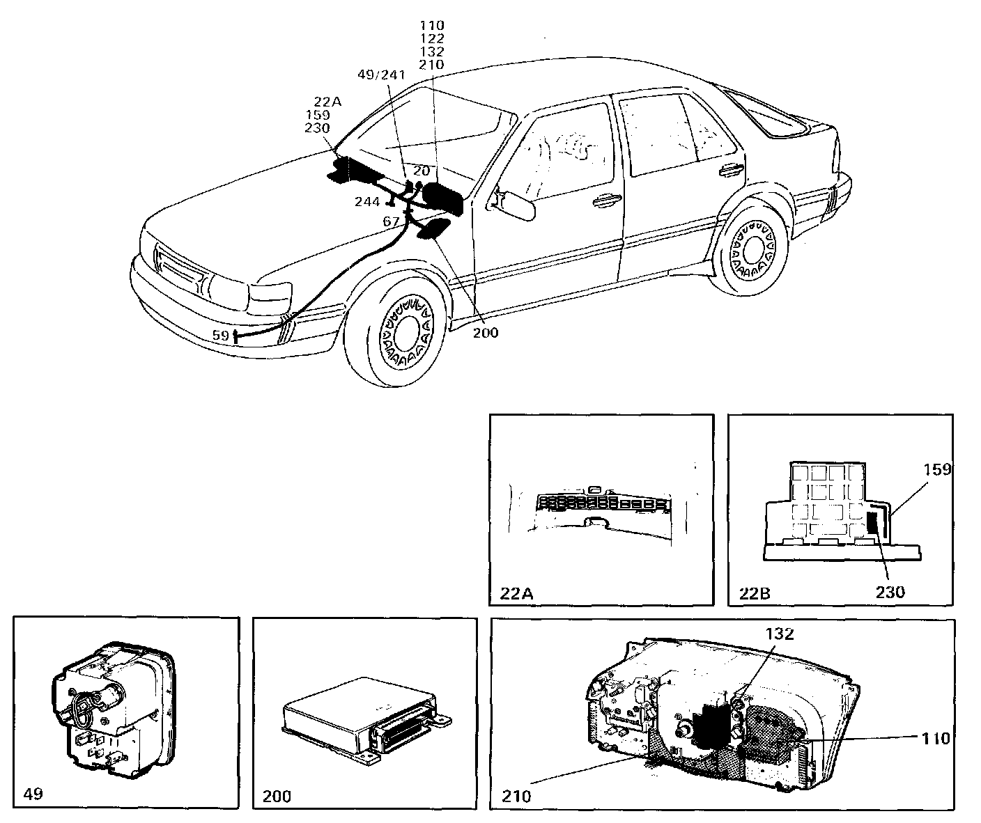 Instrument 210, control unit 200 for the fuel injection system and sensor 132 will be energized across fuse 13 when the ignition switch is set to the drive position. The instrument and clock 49 are also continuously supplied from fuse 17 (independent of the ignition switch position).