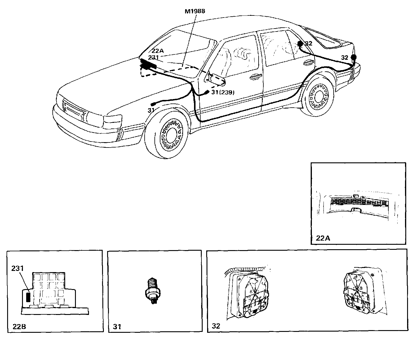 On cars with automatic transmission, reversing light switch 31 is located in selector position switch 239.