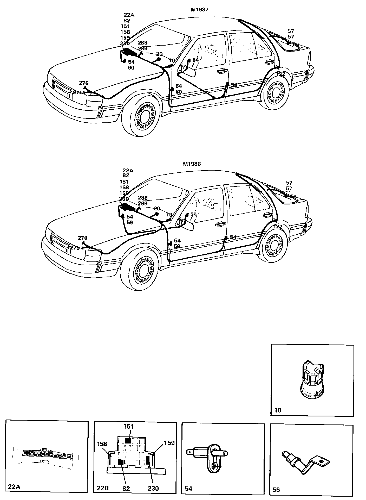 - Luggage compartment light switch 56 or HOOD switch 276 connected to pin 6.