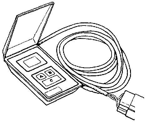 To diagnose fault codes a Saab SRS system tester, Fig. 1, will be required. The tester is designed for connection to a special SRS socket located under the rubber dust excluder between the center console and the gear shift lever on 900 models or behind lower compartment in center console on 9000 models. Connection is by means of a cable, part No. 84 71 146 and a reference resistor, part No. 84 71 153.