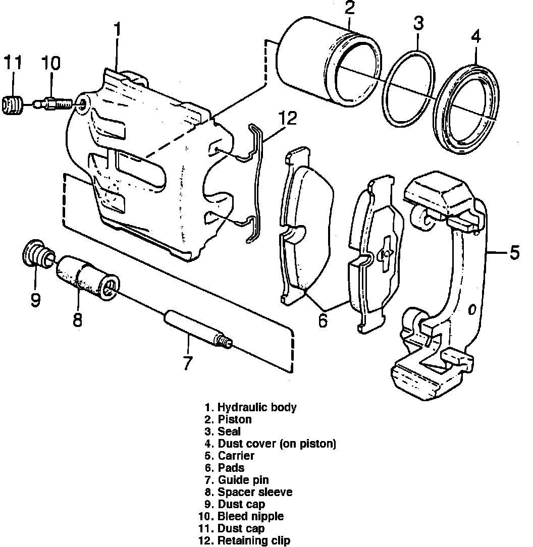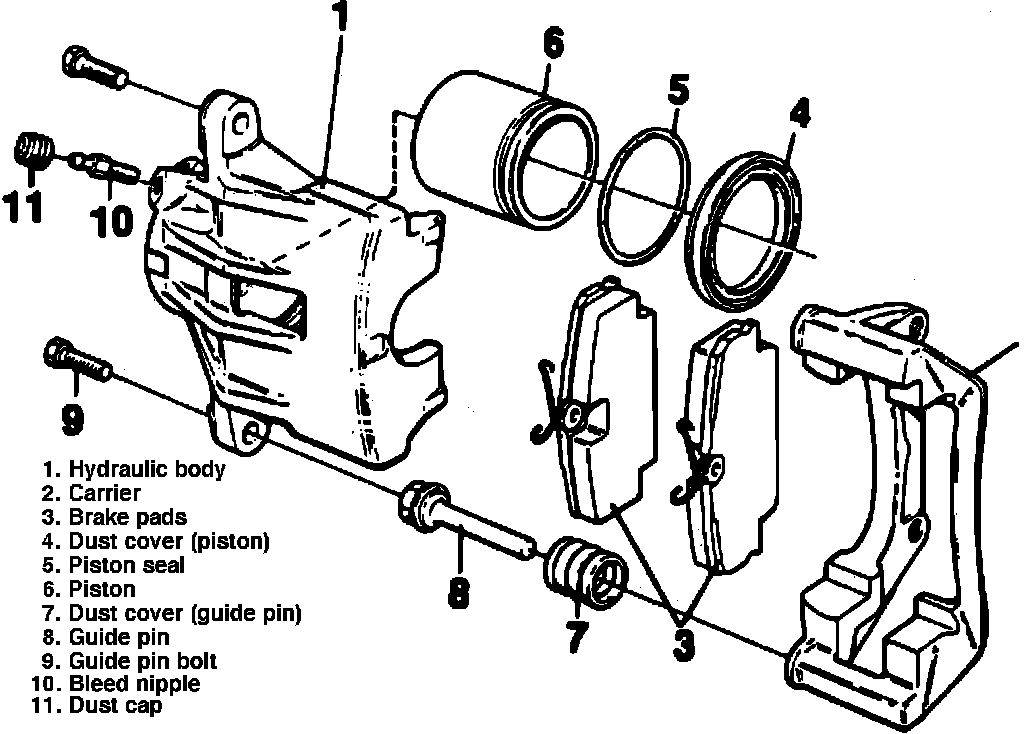 Fig. 1 Exploded View Of Front Disc Brake Caliper: