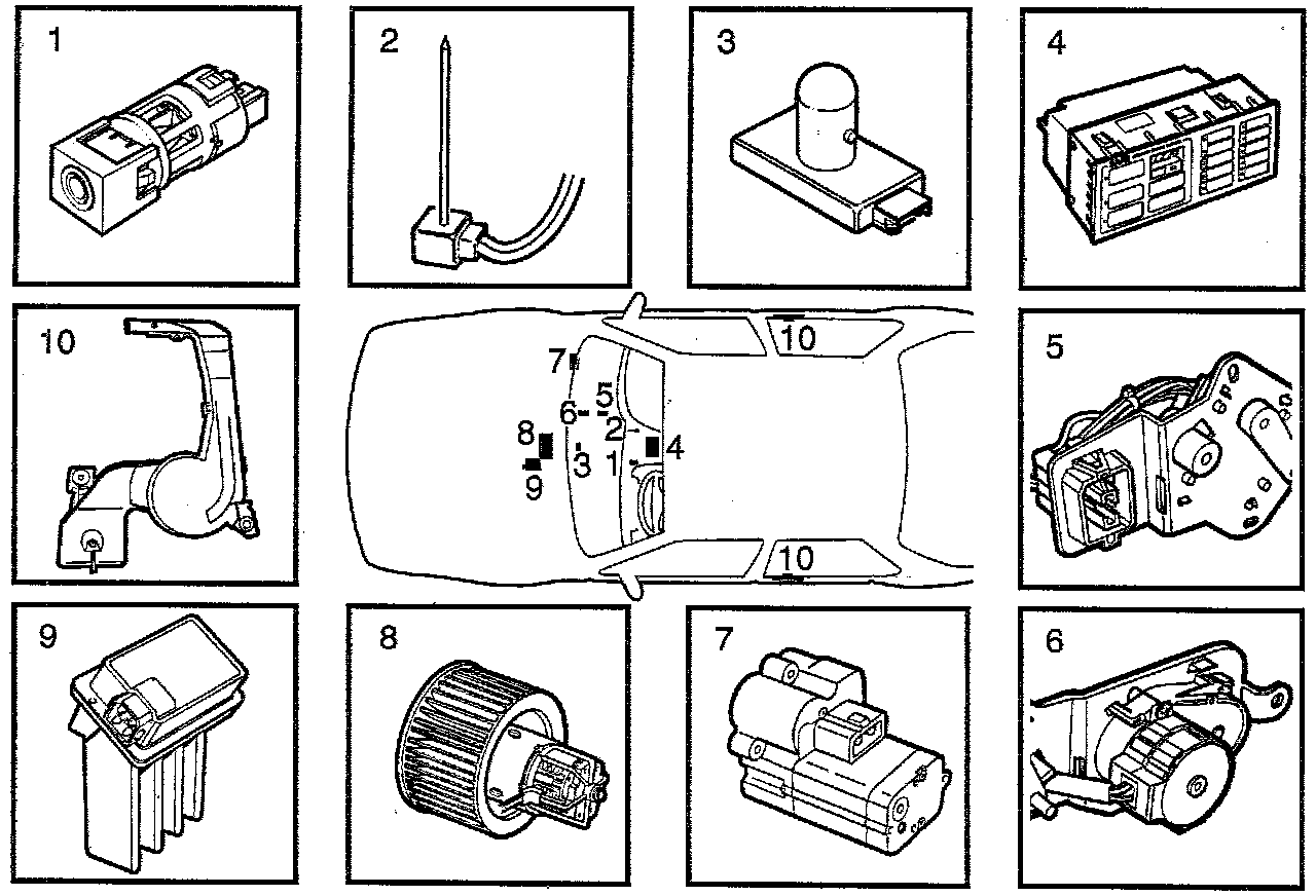 2. A blended air temperature sensor is fitted in the defroster outlet on the heating and ventilation unit. This measures the temperature of the air that is blown out of the heating and ventilation unit.