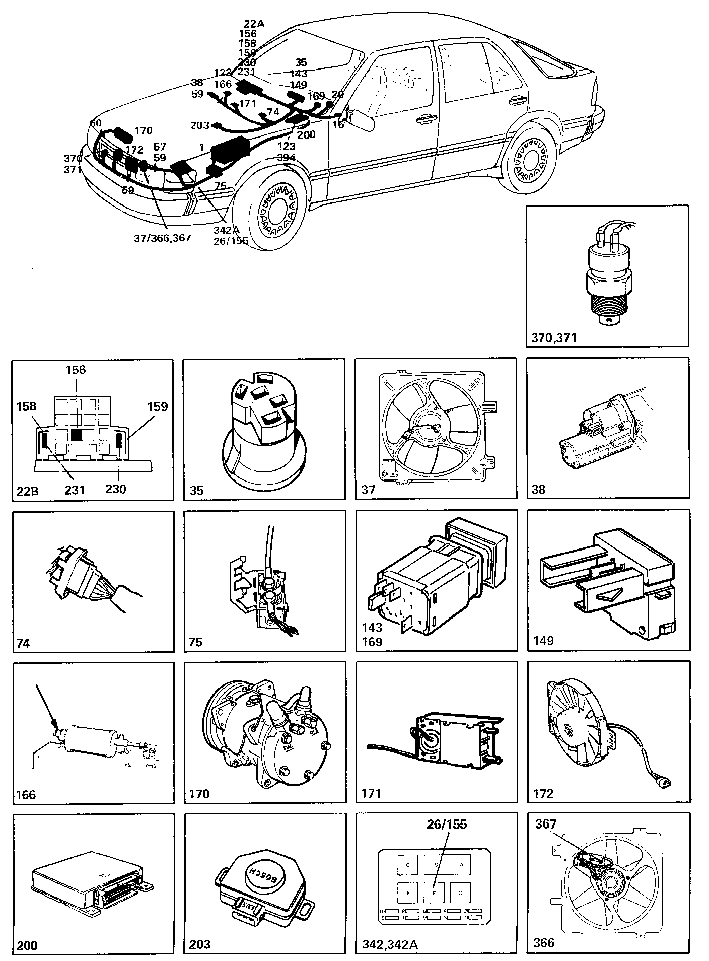 166 Pressure switch for the radiator fan (AC and ACC) on the accumulator/dryer unit, to the right, below the windscreen.