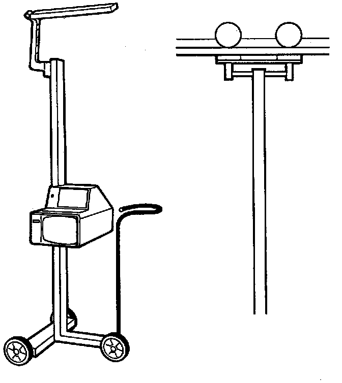 The equipment for head light beam alignment can be floor mounted or suspended from the ceiling. The suspended type is especially useful when the equipment serves various work stations.