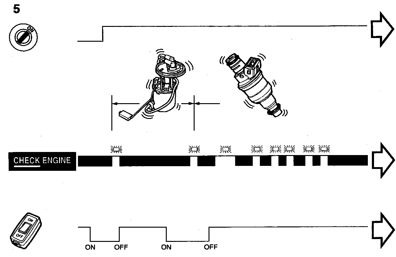 2 Switch on the ignition and wait for a short flash of the "CHECK ENGINE" lamp (MIL) and then immediately set the switch to "OFF". The fuel pump should start (if it is not defective) at the same time as the lamp flashes. Listen for the sound of the pump and possibly check the fuel pressure.