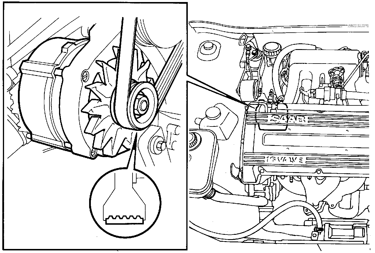 It is driven by means of a multigroove belt from the crankshaft pulley and is accessible for service and removal when the front section of the right-hand wing liner has been removed.