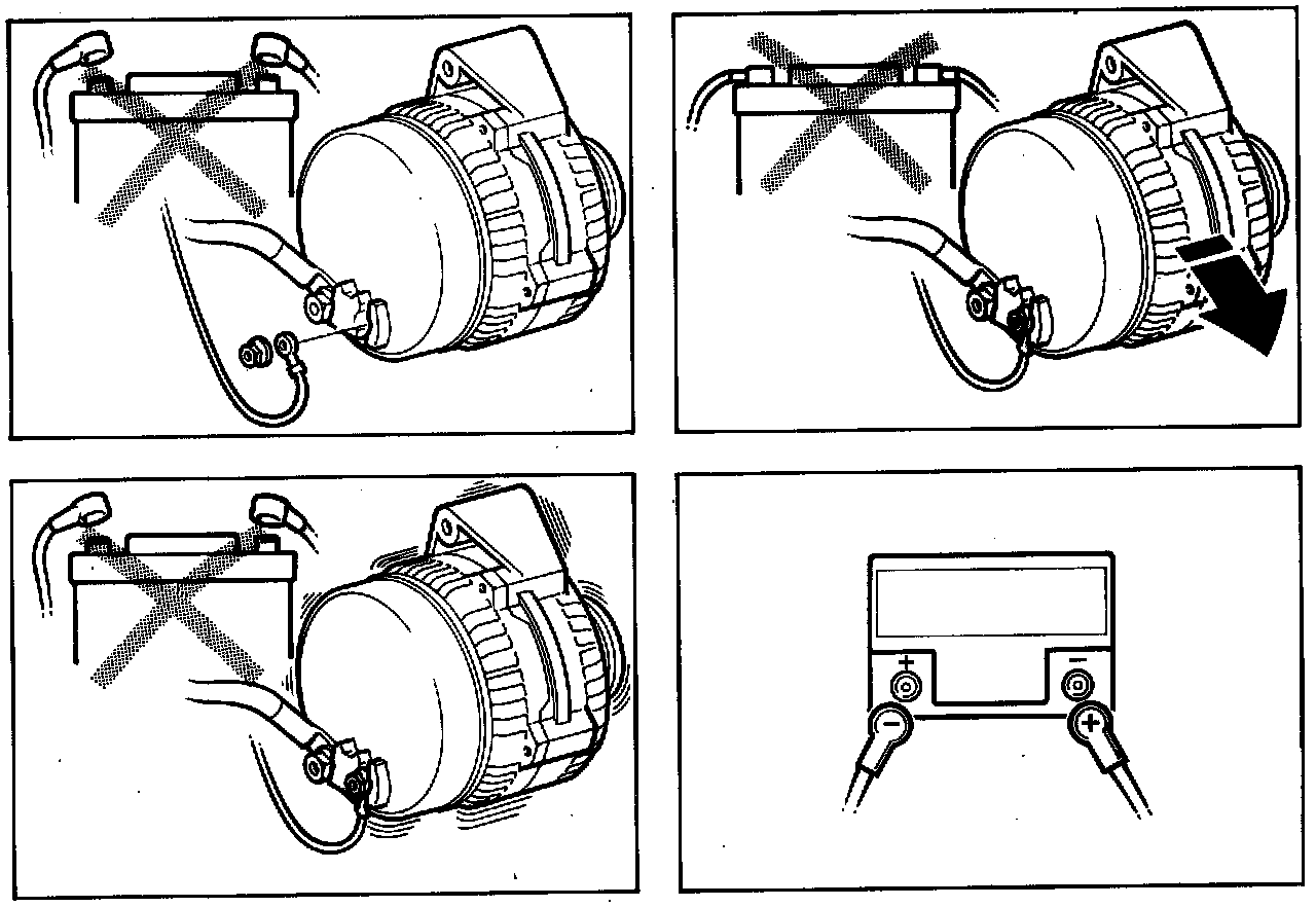 - never reverse the polarity of the battery (which could result in serious damage to the generator).