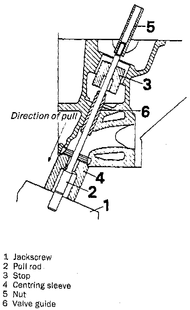 Withdraw the valve guides using special tool 83 93 803 with pull rod 83 93 811, spacer sleeve 83 93 829 and nut 83 93 845, or equivalents.