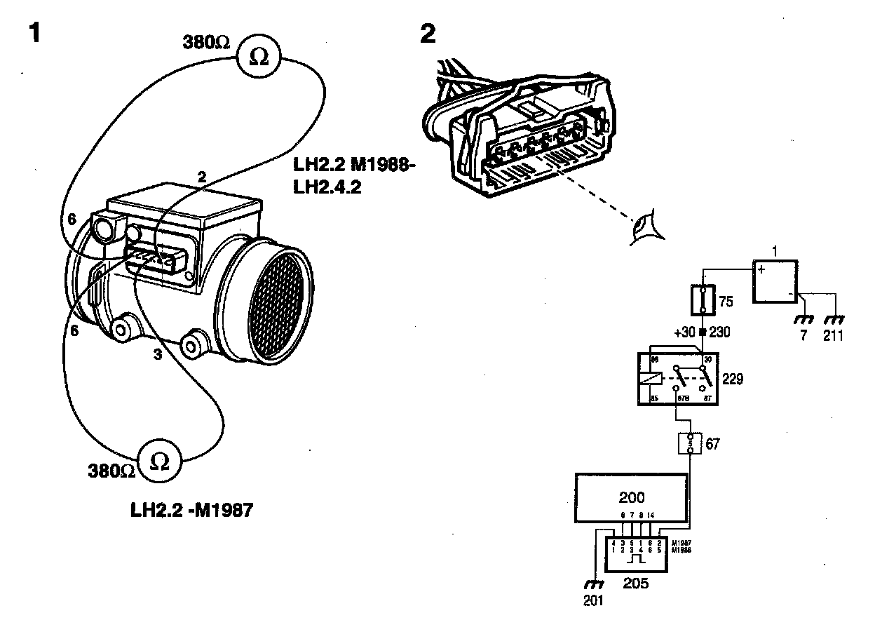 Checking the Mass Air Flow SensorIn connection with diagnosing faults on and/or carrying out repairs to the LH 2.2 and LH 2.4 fuel injection systems on mode; year 1988 and later cars, it is important to observe the following: