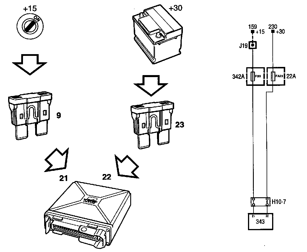 The control module uses this current (+30 circuit) for its memory. The engine will not start without power supplied via the +30 circuit.