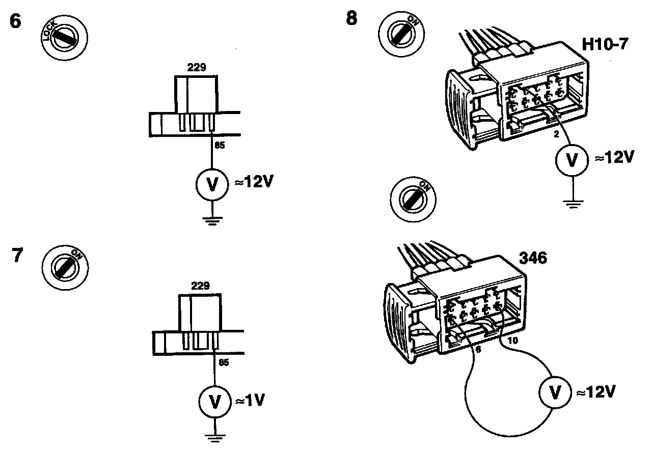 - Check the power supplied to relay pin 85. It should be about 1 V.