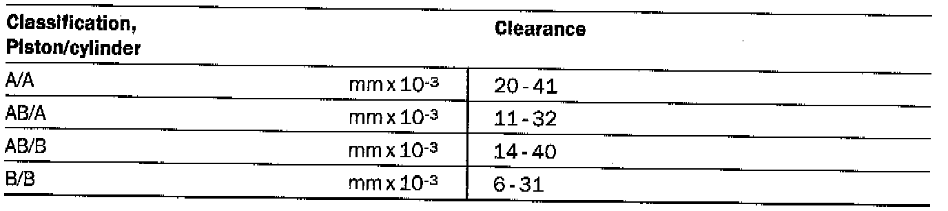 The piston classification code is stamped on the piston crown. The codes for servicing are: