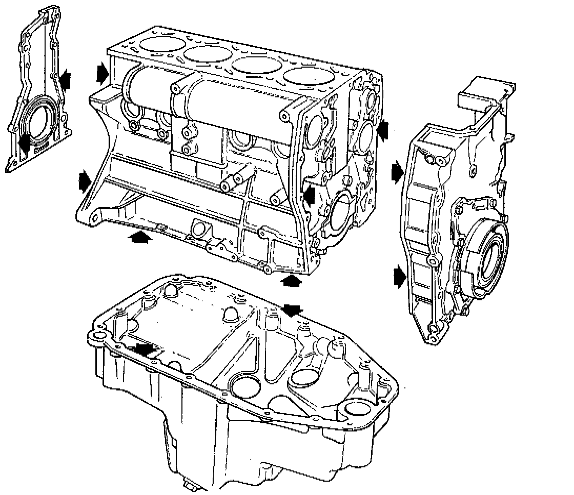17. See that the flanges on the timing cover are spotlessly clean and apply a bead of suitable anaerobic sealant, about 1 mm thick, along the middle of the flanges as shown.