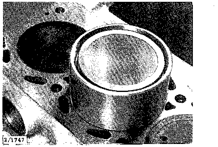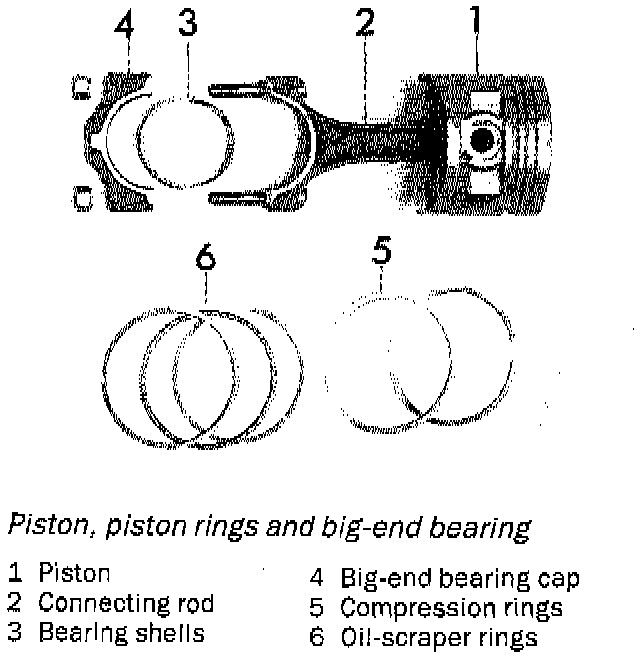 ^ Rotate the compression rings through 180° to bring the gaps in line with the boss for the wrist pin.