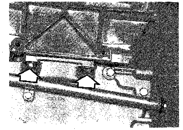 ^ Adjust the positions of the bearing shells and install the two thrust washers for the main bearing between No. 2 and No. 3 cylinders, with the embossed side of the washers towards the main bearing.