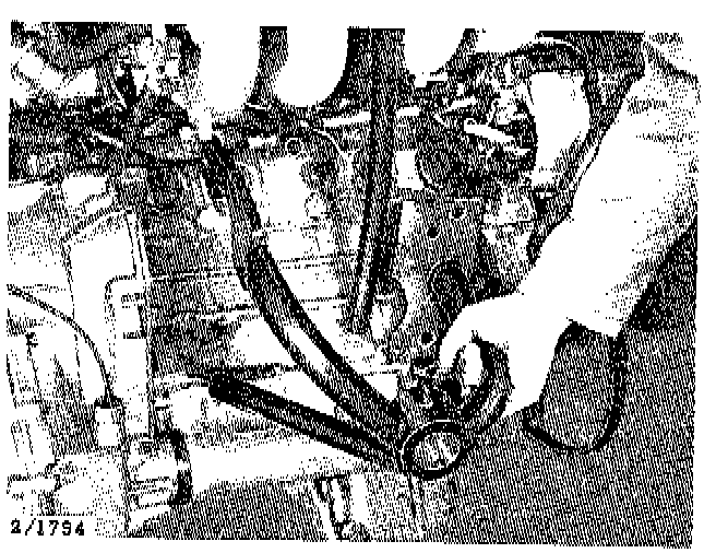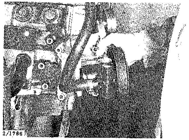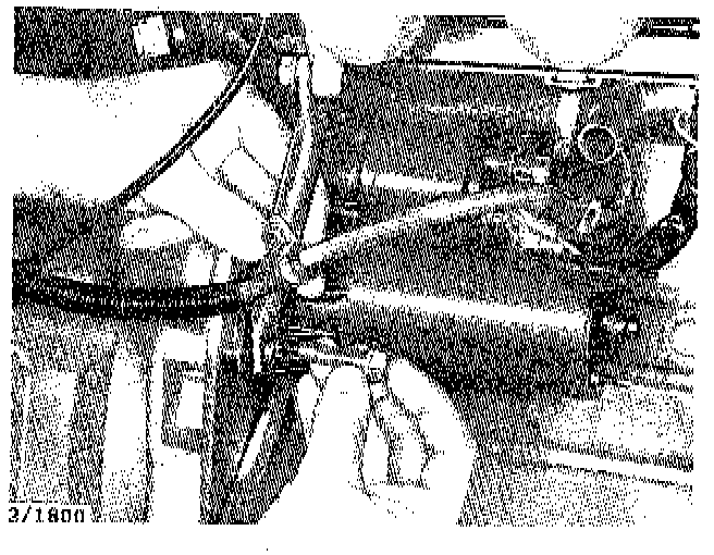 3. Remove the clip from the throttle linkage and the clip from the inlet manifold side bracket and disconnect the kickdown cable.
