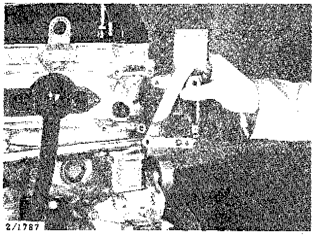 ^ Remove the outer securing bolt and the steady bar from the inlet manifold.