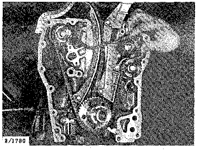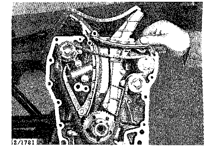 31. Remove the timing cover complete with oil pump, crankshaft sensor and reducing valve. Note that the bolts are different lengths.