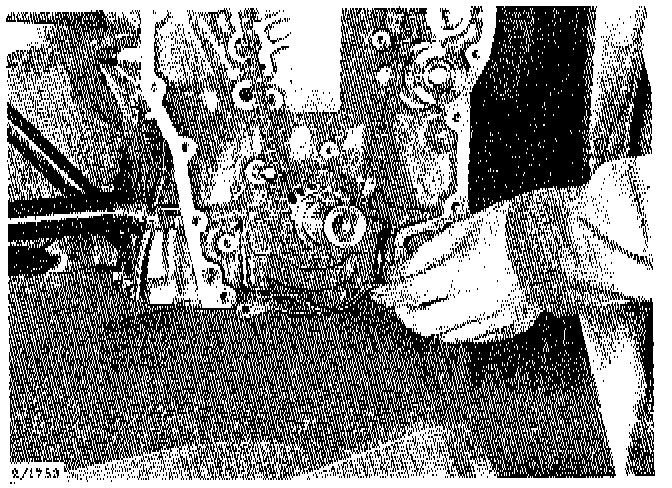 11. Remove the two-part exhaust manifold, inner section first and outer section last. Note the spacer sleeves on the bolts in the outer section.