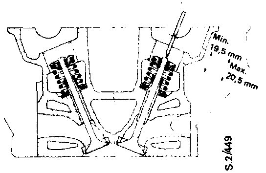 ^ If the valve clearance deviates from the specified checking values, adjustment must be made to the valve stem or the valve seat: if the value is lower than the minimum value then the length of the valve must be reduced; if the value is greater than the maximum value, then the valve seat must be milled. The nominal value for adjusting the position of the valve is 20.2 mm (0.795 inch).