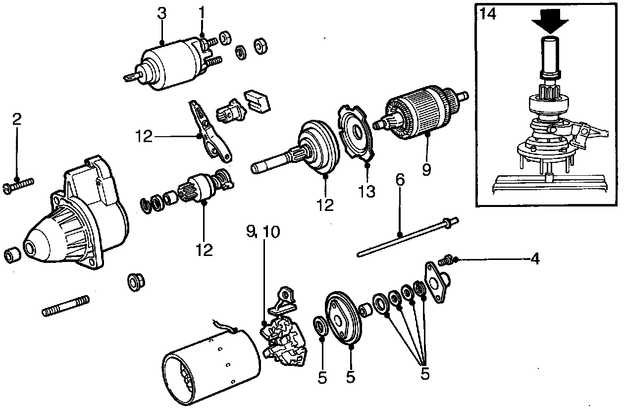 9 Withdraw the armature and brush-holder assembly through the rear of the starter motor housing.
