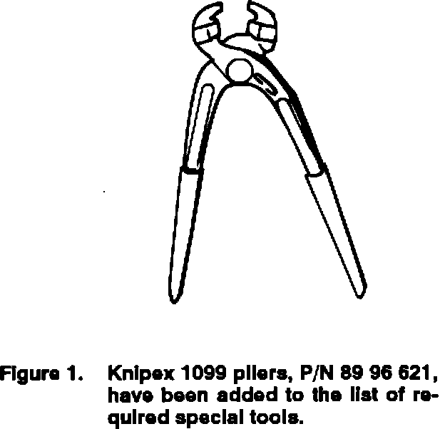 The new clamp pilers, P/N 89 96 621, have been designated as a required special tool and will be automatically shipped to your dealership during the month of January 1992.