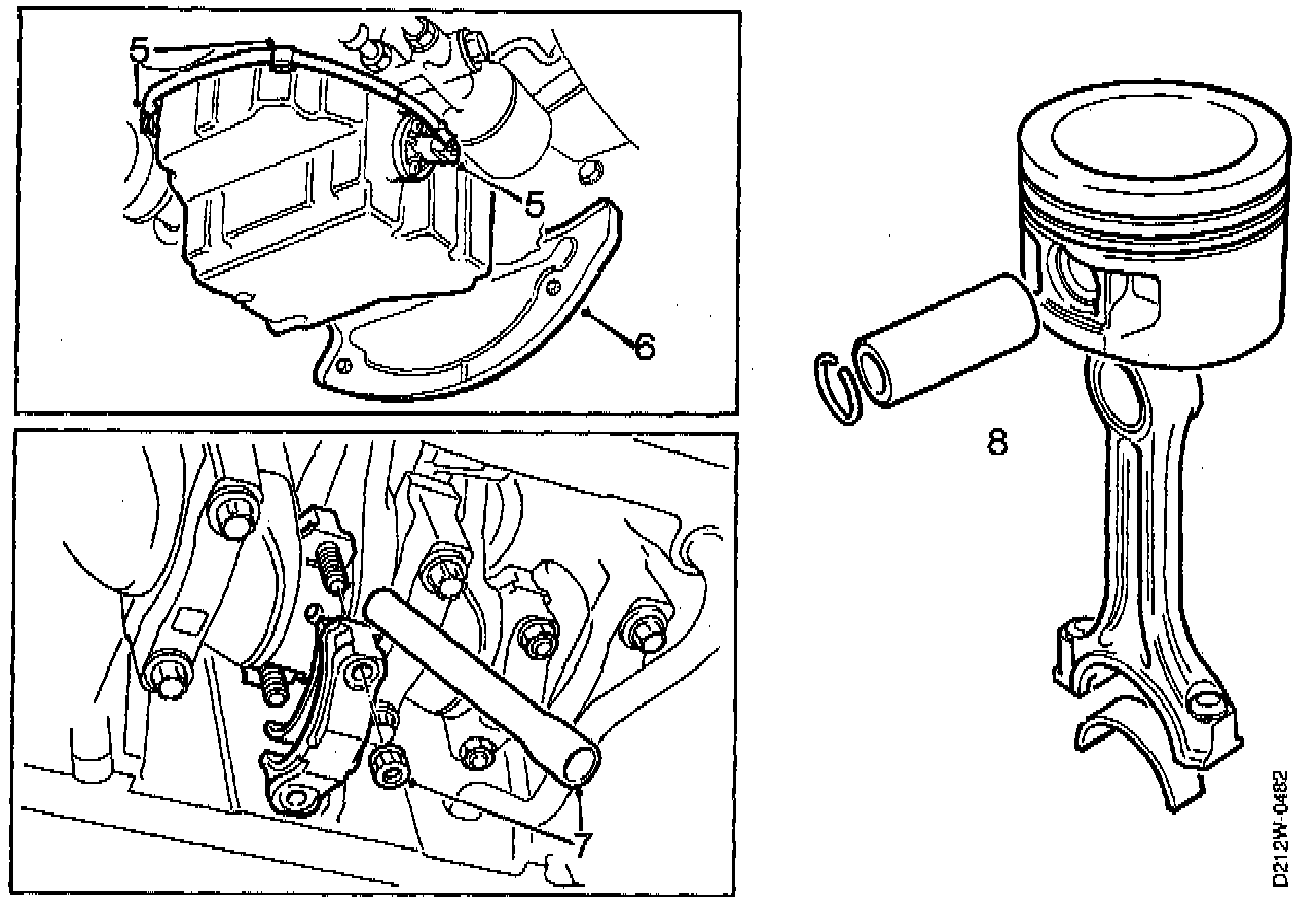 8. Remove the wrist pin circlips and drive out the wrist pins, using a rubber mallet and drift.
