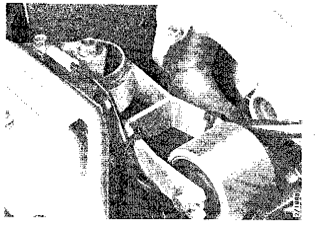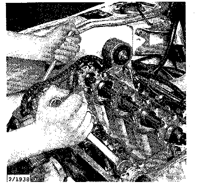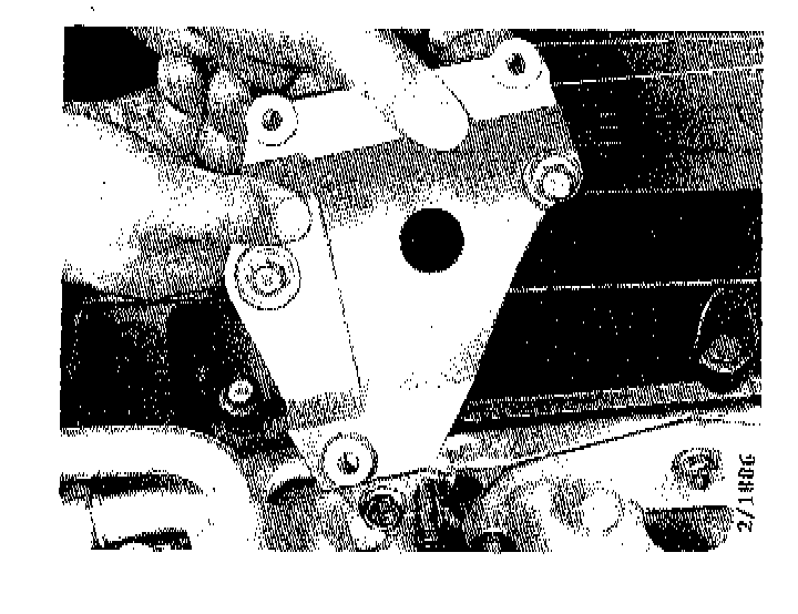 10. Install the two bolts in the top of the engine mounting bracket and tighten the lower ones at the same time.