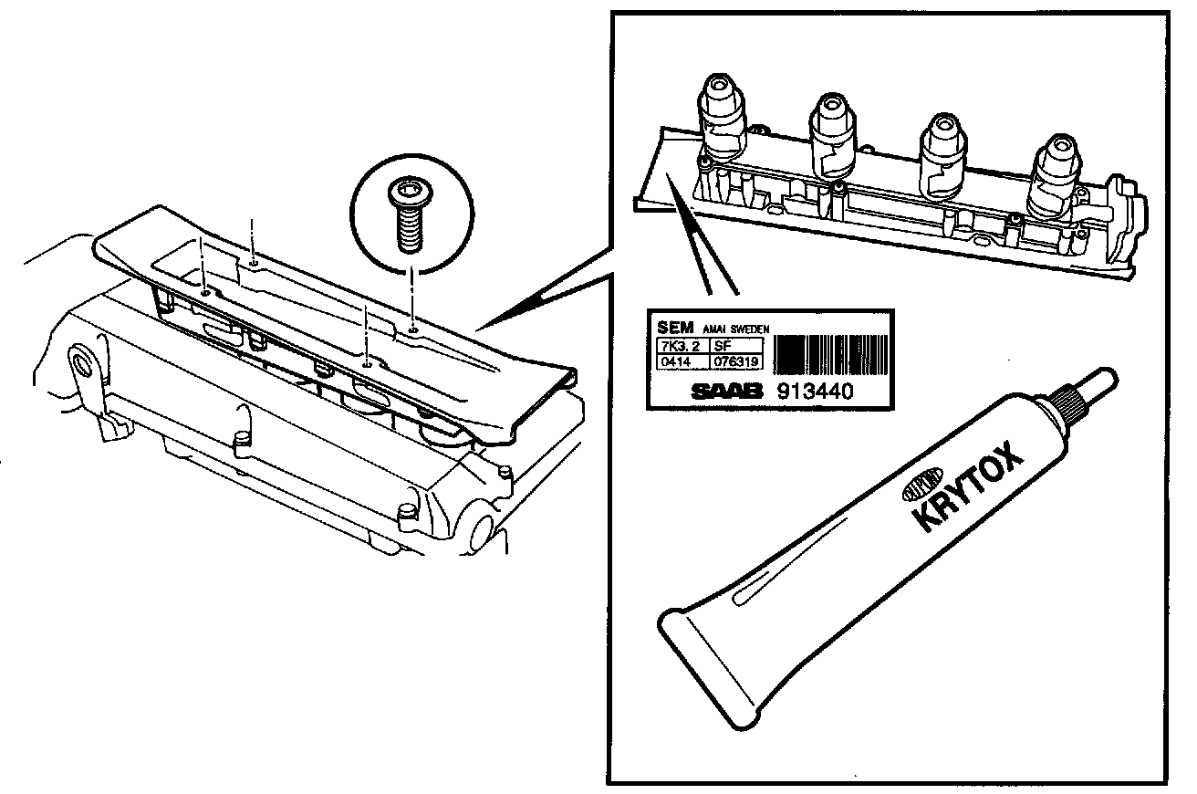 When the ignition discharge module is removed it sometimes happens that its rubber seal sticks to the spark plug insulators and sustains damage. This applies to cars with an ignition discharge module having a serial number lower than 114 000.