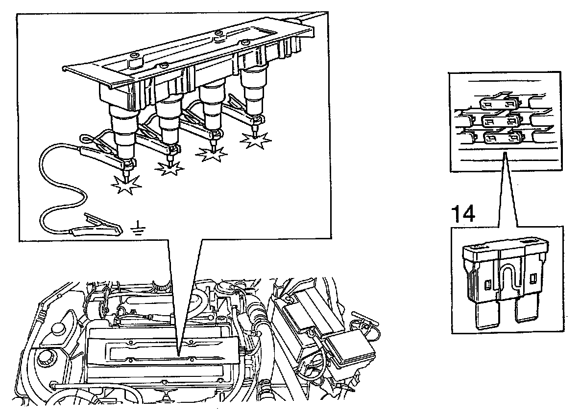 Tools: Ground cable 86 10 867 and test spark plug 86 11 386.