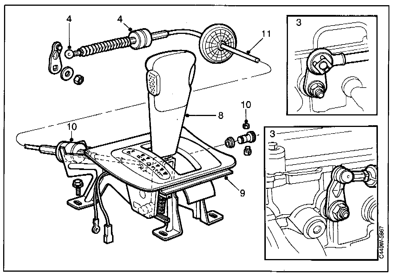 11 Remove the gear selector cable.