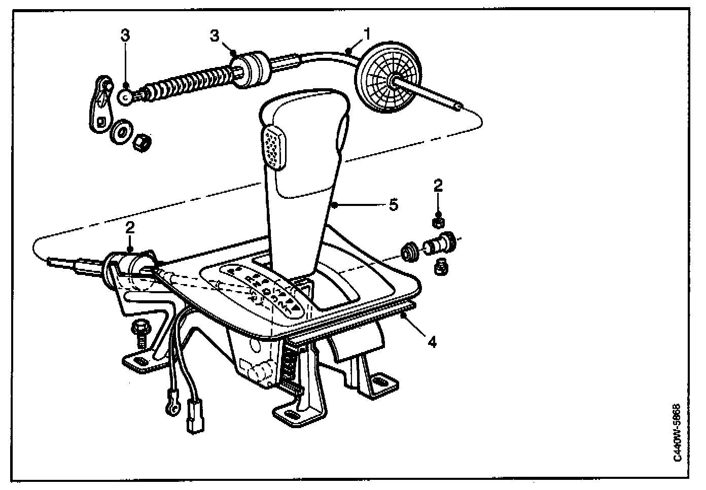 Rubber mounted selector cable is attached with clips.