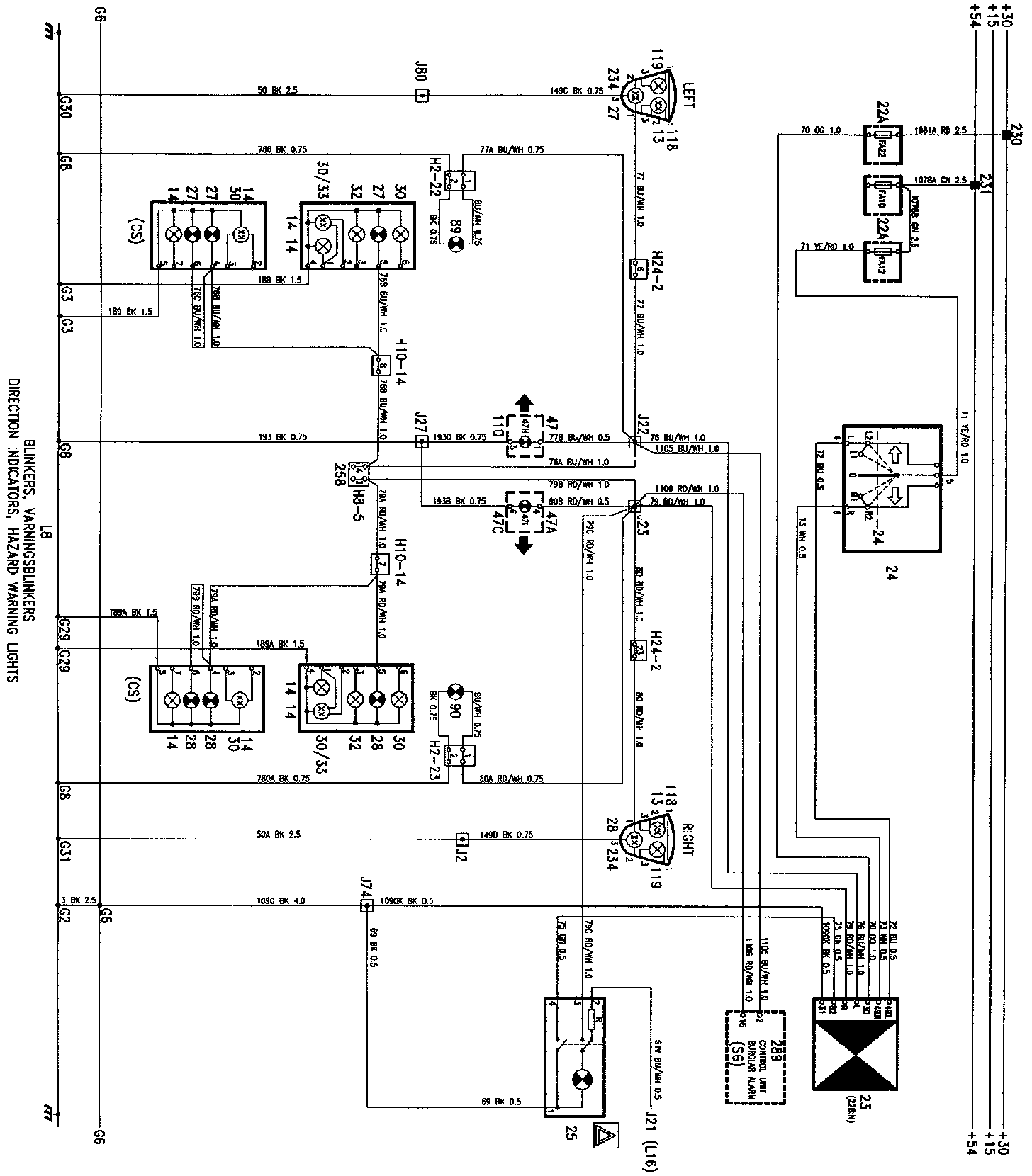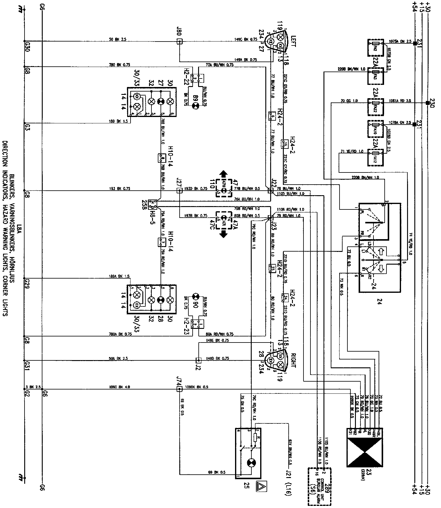 Direction Indicators & Hazard Warning Lights W/Corner Lights: