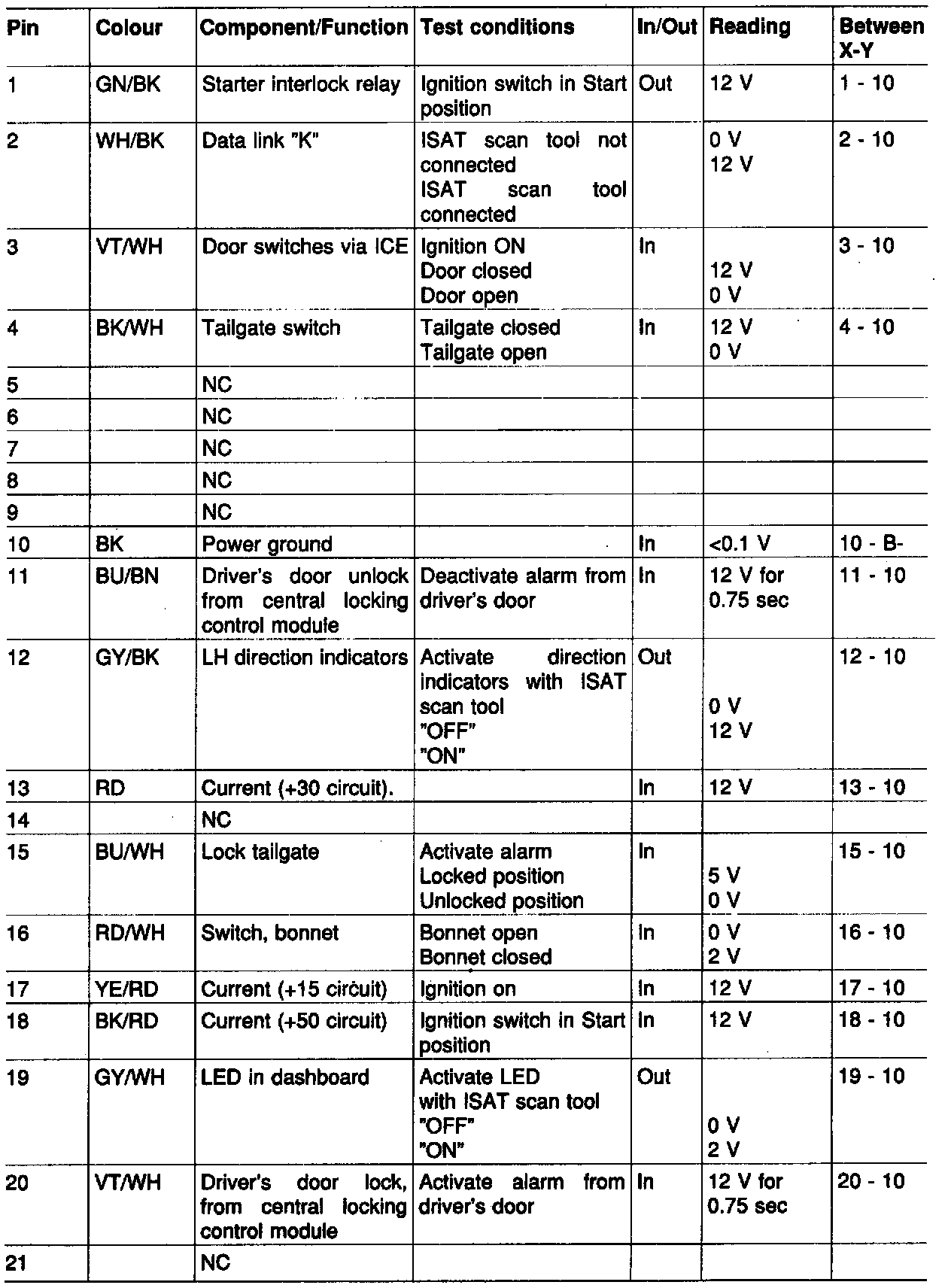 Unless otherwise stated, readings should be taken via a BOB with the ignition switched off, the alarm deactivated, all components connected and all connectors plugged in.
