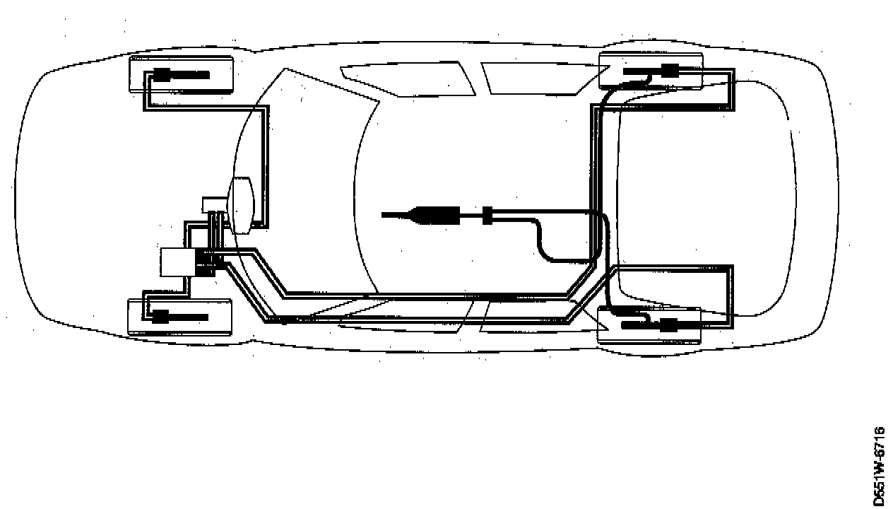 Two pipes run from the master cylinder (primary/secondary) to the ABS unit (valve lock) that in turn supplies the wheel cylinders with brake fluid. Brake fluid reservoir is installed directly to the master cylinder.