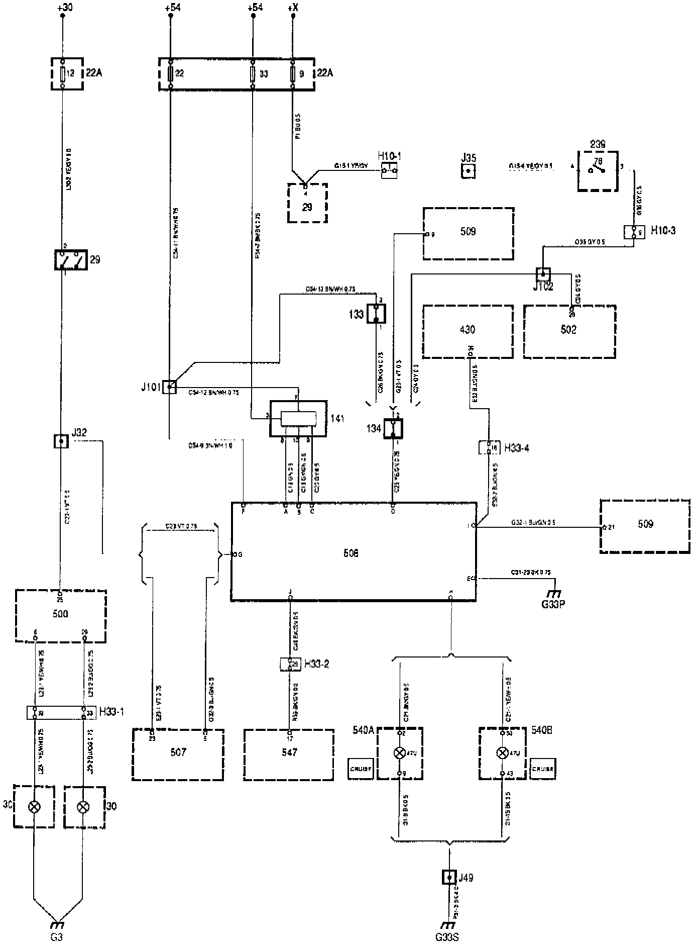 When the Set button is depressed, power is supplied to terminal 3 of the control unit and vehicle speed is sensed by the speed transmitter. The value is supplied to the control unit and is stored in the unit's memory.