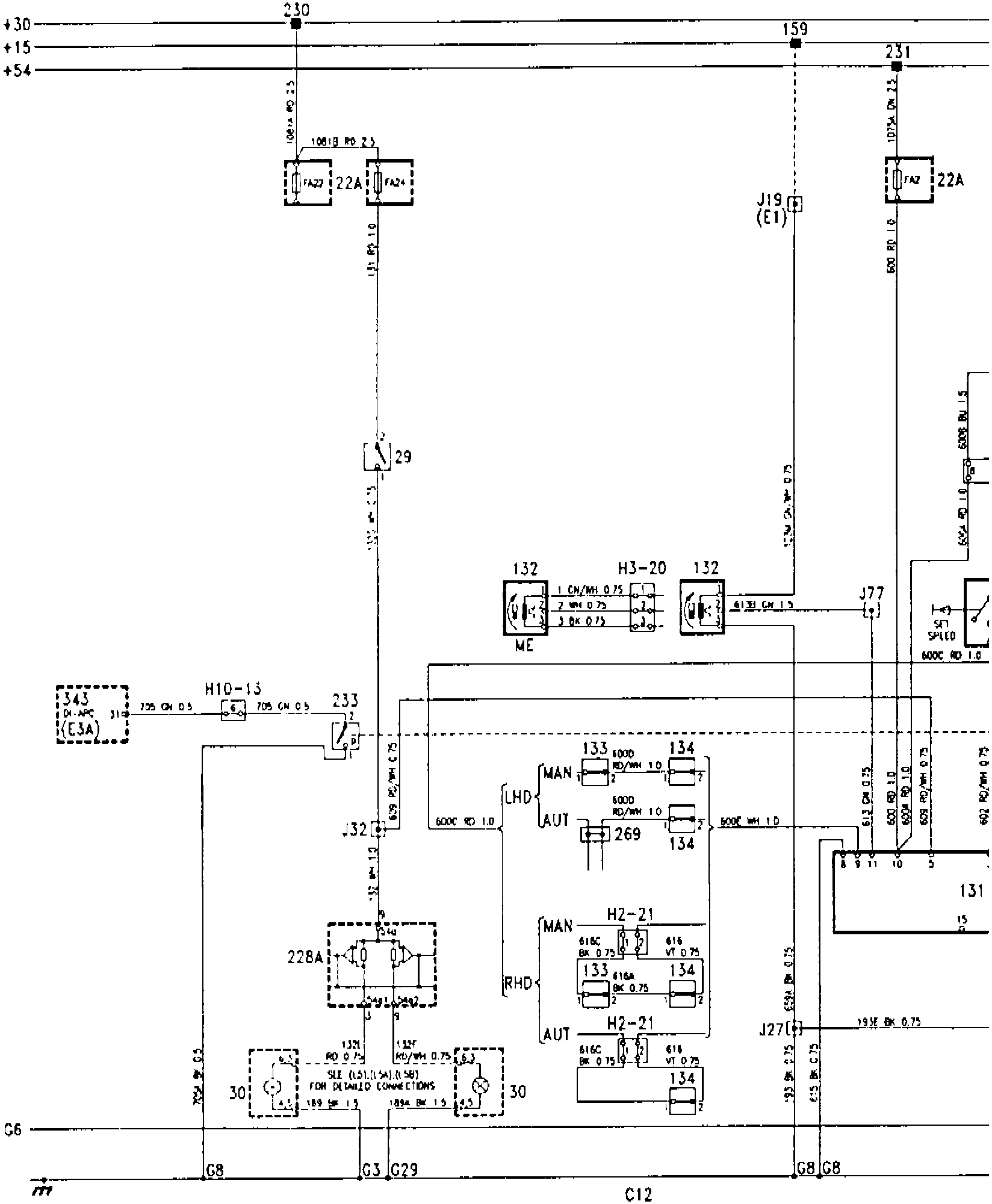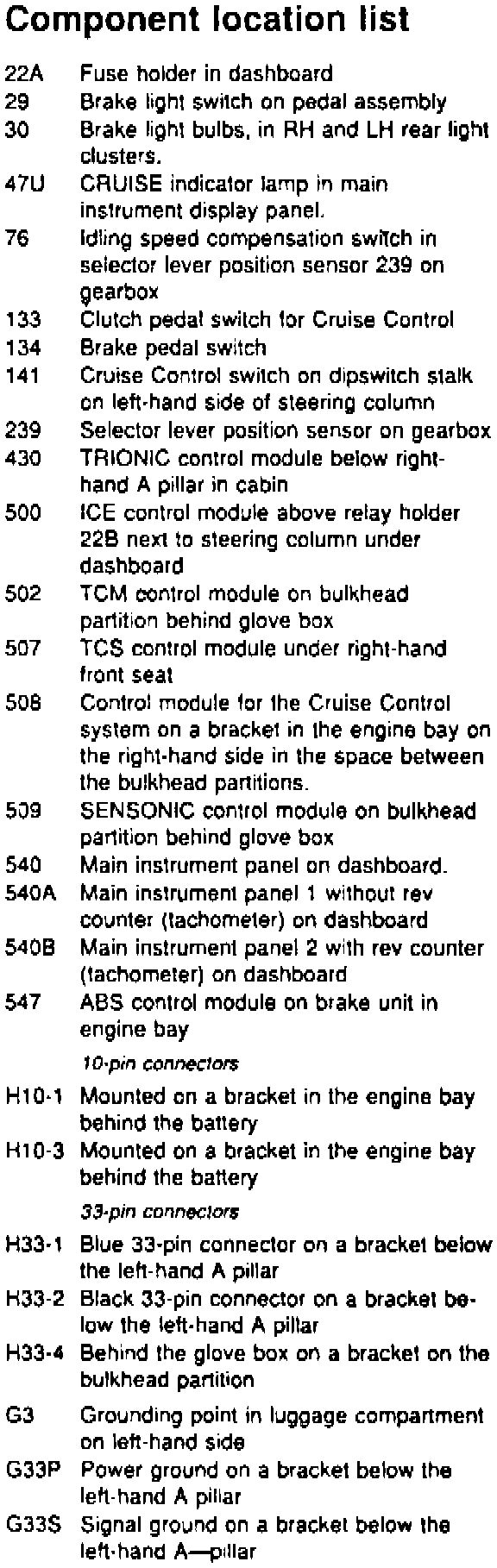 If a fault should arise in either of the pedal switches, the speed control system will be switched out by the brake light switch.