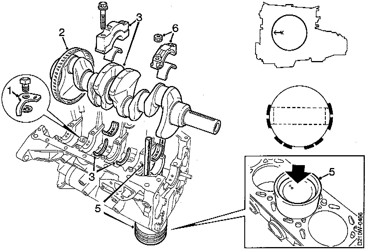 3. Lubricate and install the main bearing caps in their correct positions, making sure that they are the right way round, then tighten to: 110 Nm (81.4 ft. lbs.).