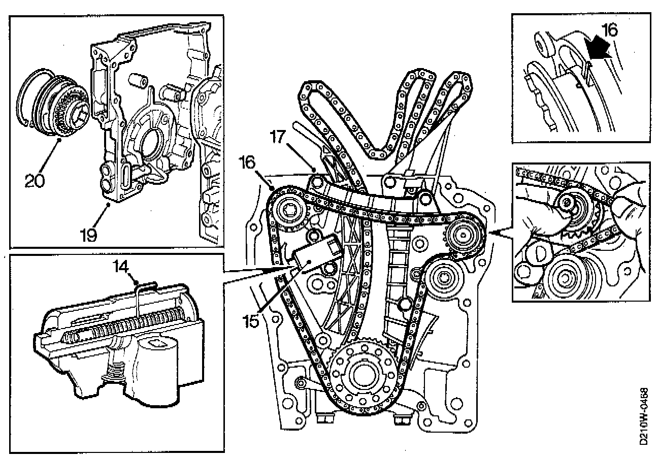 15. Install the chain tensioner and tighten to : 10 Nm (7.4 ft. lbs.).