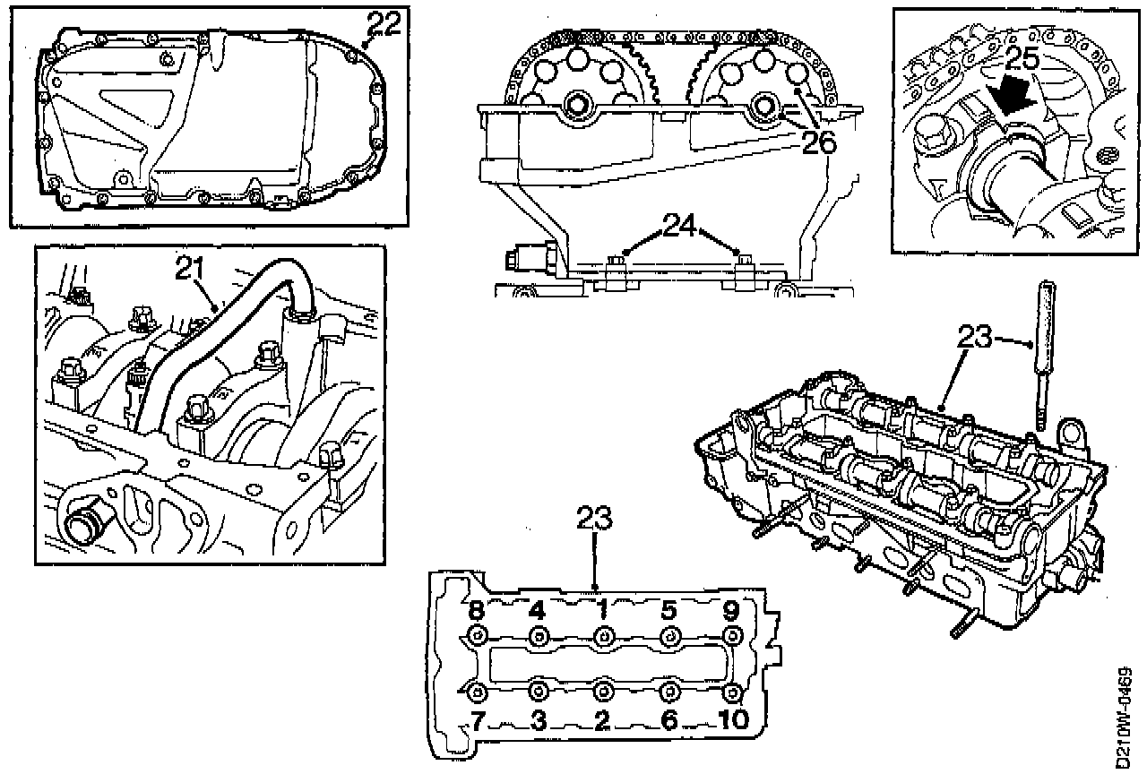 - Using the sequence shown, tighten the cylinder head bolts in three stages:
