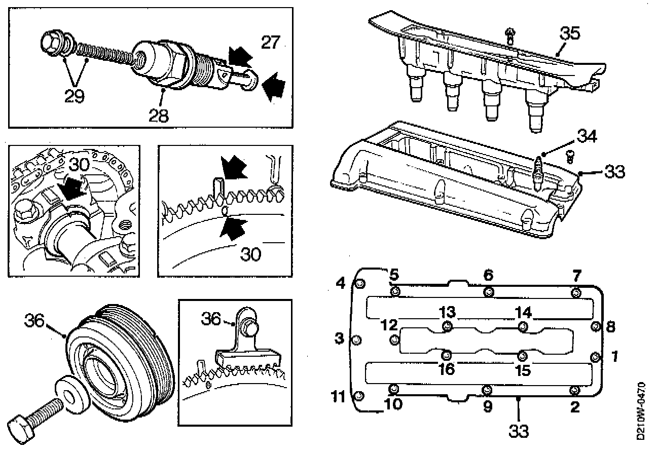 36. Install flywheel locking segment tool No. 83 94 868 and tighten the crankshaft pulley to: 175 Nm (129.5 ft. lbs.).
