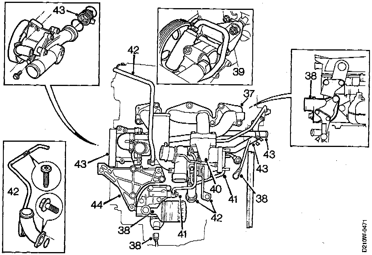 43. Lubricate the O-rings with Vaseline (petroleum jelly) and install the water pump and water pipes from the expansion tank and heat exchanger.
