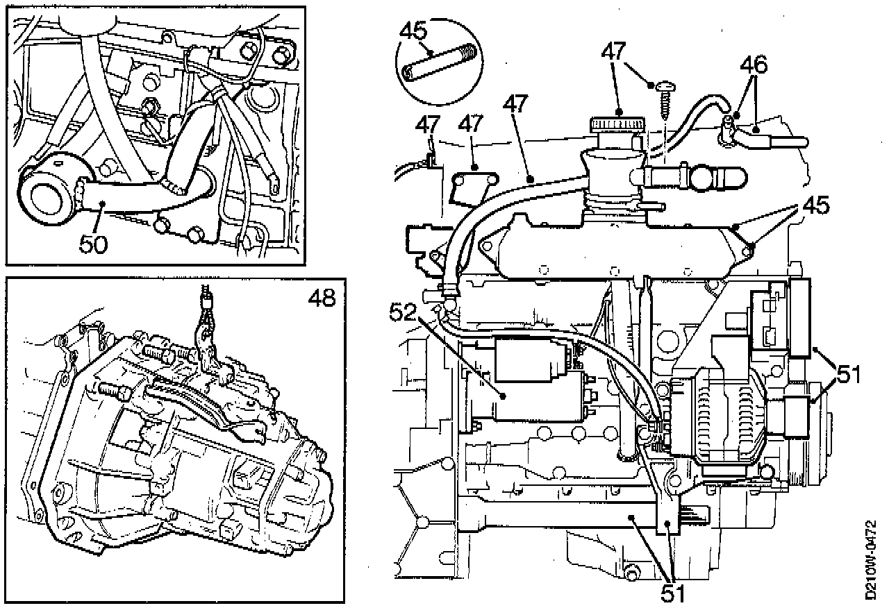 48. On models with automatic transmission, check that the torque converter is properly seated in the transmission casing and that the locking screw is fitted.